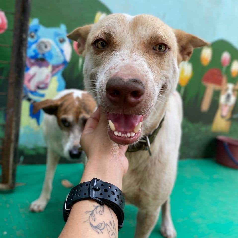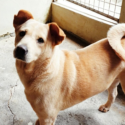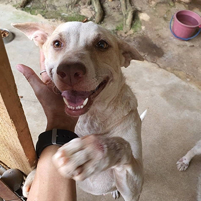 Gender: Female Age: Adult Color: White with patches of brown Description: Large dog, affectionate and playful Location: Bulacan Shelter